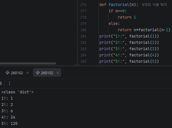 재귀 함수를 사용해 팩토리얼 구하기