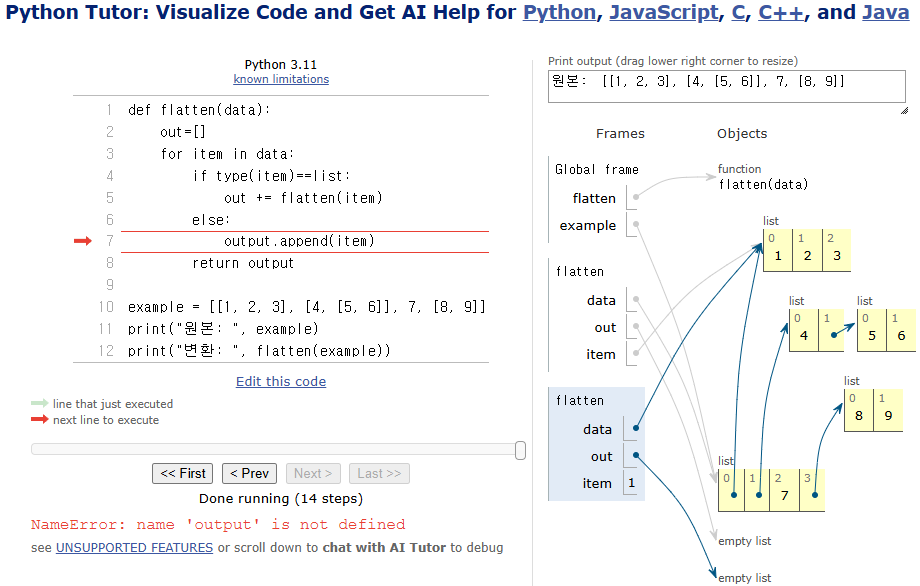 2차원 리스트 평탄화