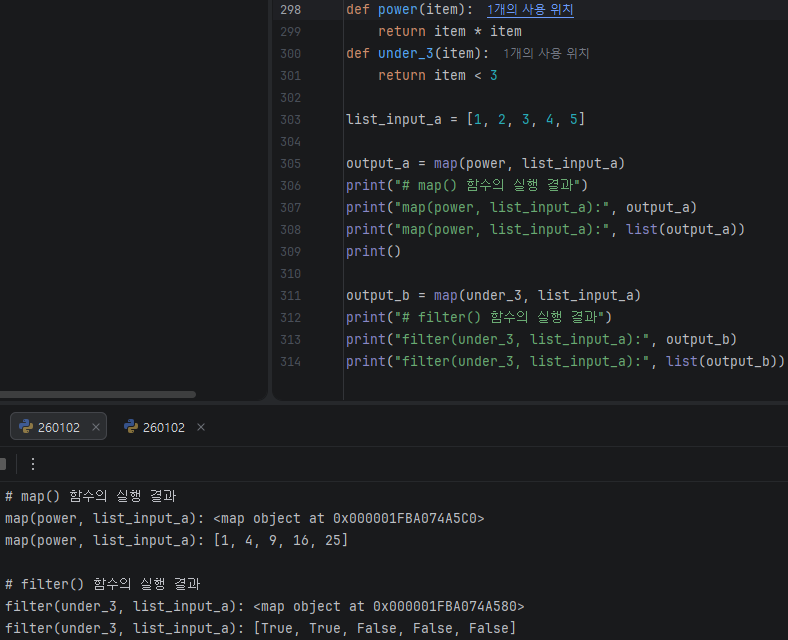 filter(): 리스트의 요소를 함수에 넣고 리턴된 값이 True인 것, 새로운 리스트 구성해주는 함수