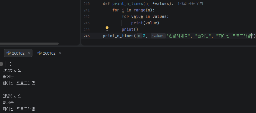 기본 매개변수 : '매개변수=값' 형태