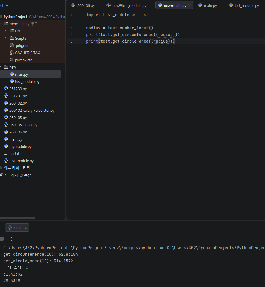 print("# 반지름을 변경하고 원의 둘레와 넓이를 구합니다.")
