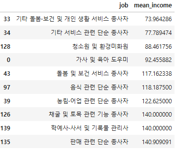 직업별 월급 차이