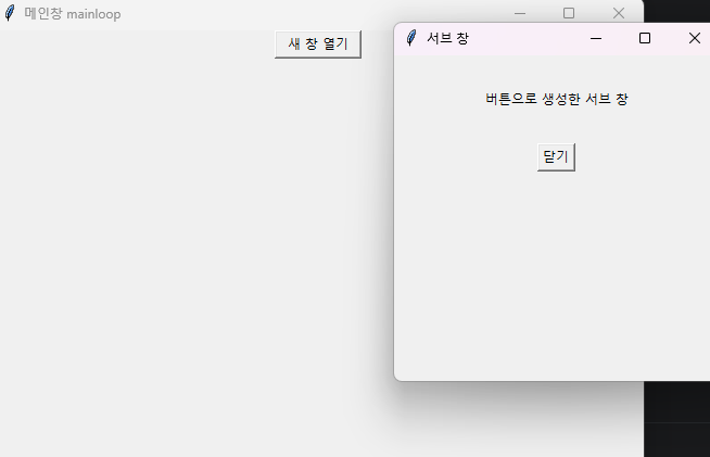 window.destroy()는 위젯을 파괴하고 window.mainloop() 이후의 코드를 실행(삭제)