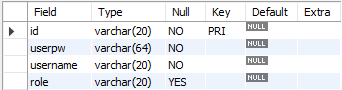 userpw (String(64), 해시 저장)