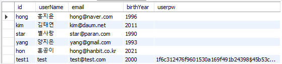 사용자ID 사용자이름 이메일 출생연도
