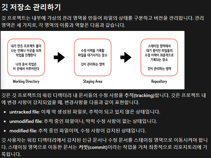 $ git add <문서이름> # 워킹 디렉터리 내 문서를 스테이징 영역에 추가하는 깃 명령어