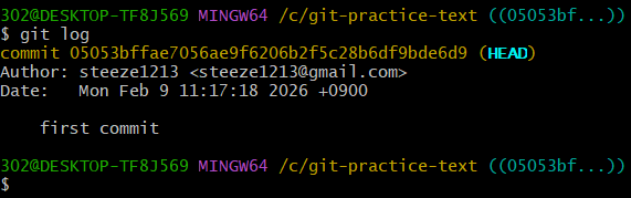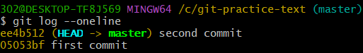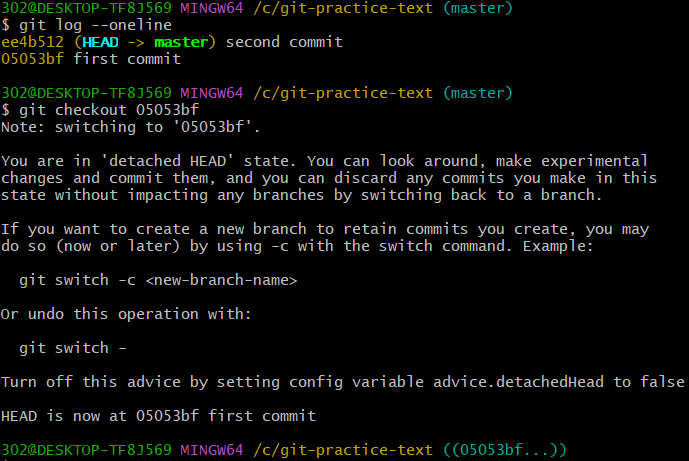 302@DESKTOP-TF8J569 MINGW64 /c/git-practice-text ((05053bf...))