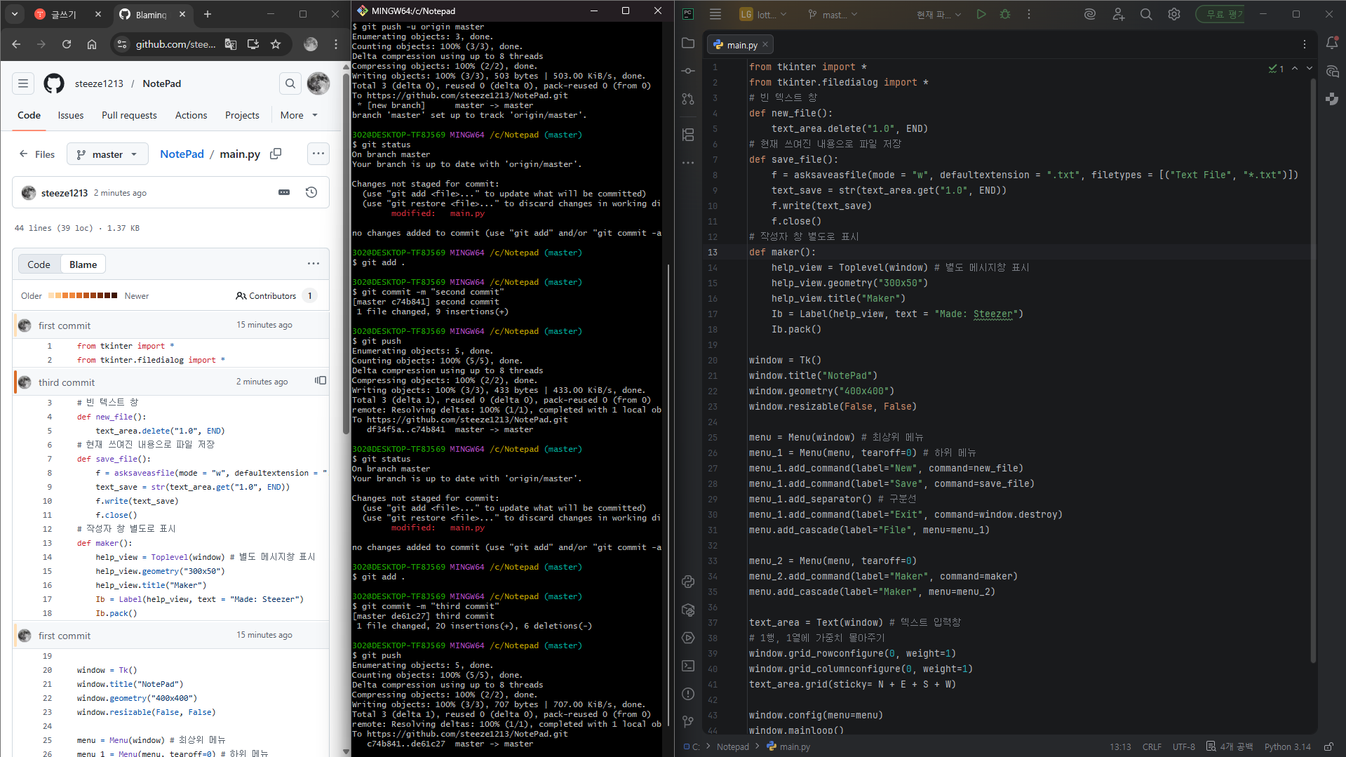 $ git commit -m "third commit"