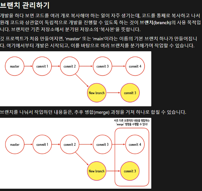 $ git merge <브랜치이름> # 현재 브랜치에 다른 브랜치의 내용을 병합하는 깃 명령어