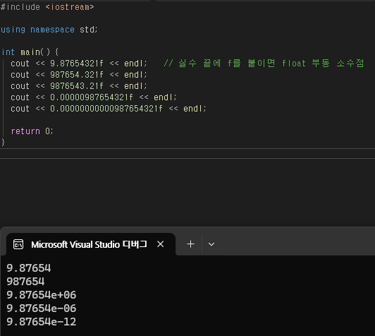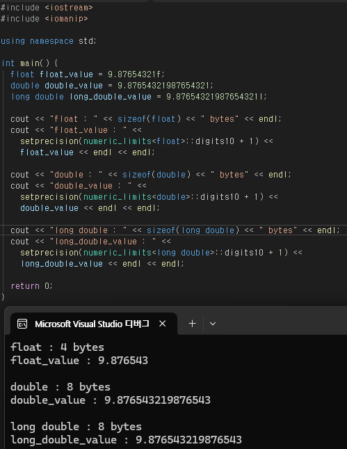 → float의 실제 정밀도 한계를 정확히 보기 위함