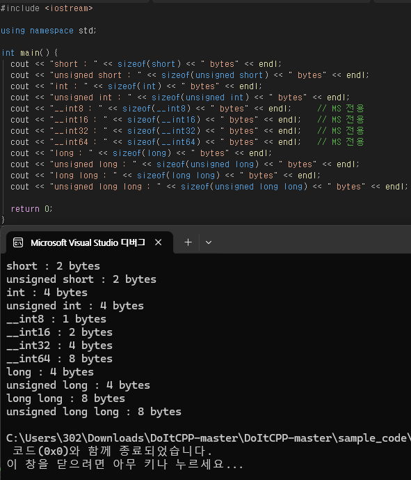 ㄴ정수를 표현하는 형식으로, int, short, long, long long 등이 있다.