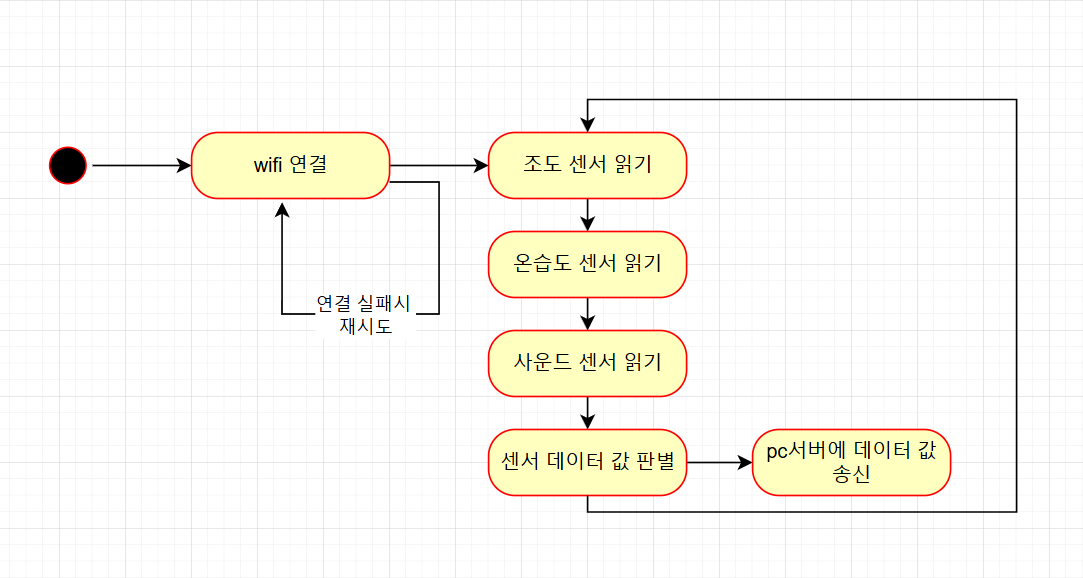 | 소음 (사운드 센서) | > 550 / 1023 | 초과 시 | ALERT |