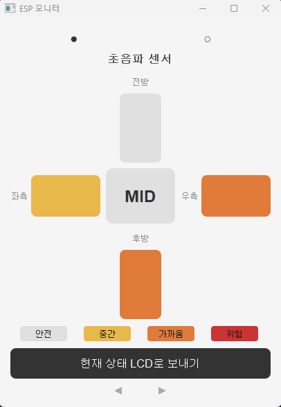 | Board1 | 4방향 근접 거리 측정 + WiFi 전송 | HC-SR04 × 4, ESP8266 |