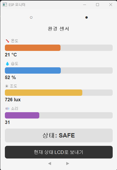 - 임계값 기준 초과 항목 존재 시 LV:ALERT, 모두 정상 시 LV:SAFE로 UDP 전송